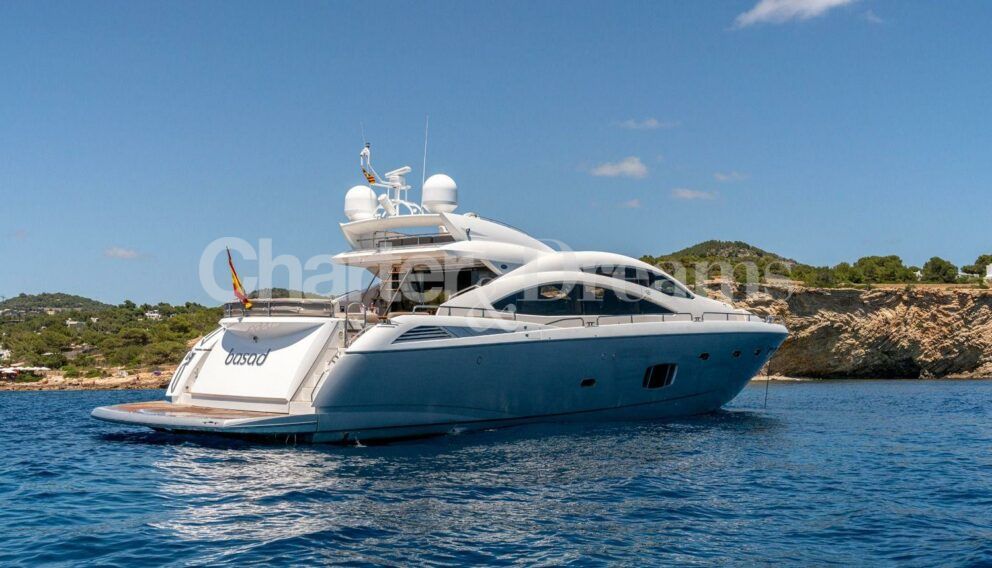 BASAD is the perfect choice for those looking to combine speed, design, and comfort in one single yacht. This 26.5-metre Sunseeker Predator 84, based in Ibiza, is one of the most iconic models from the renowned British shipyard. Following a recent teak and hull paint refit, BASAD is looking better than ever — sleek, powerful, and ready to conquer the waters of Ibiza and Formentera.