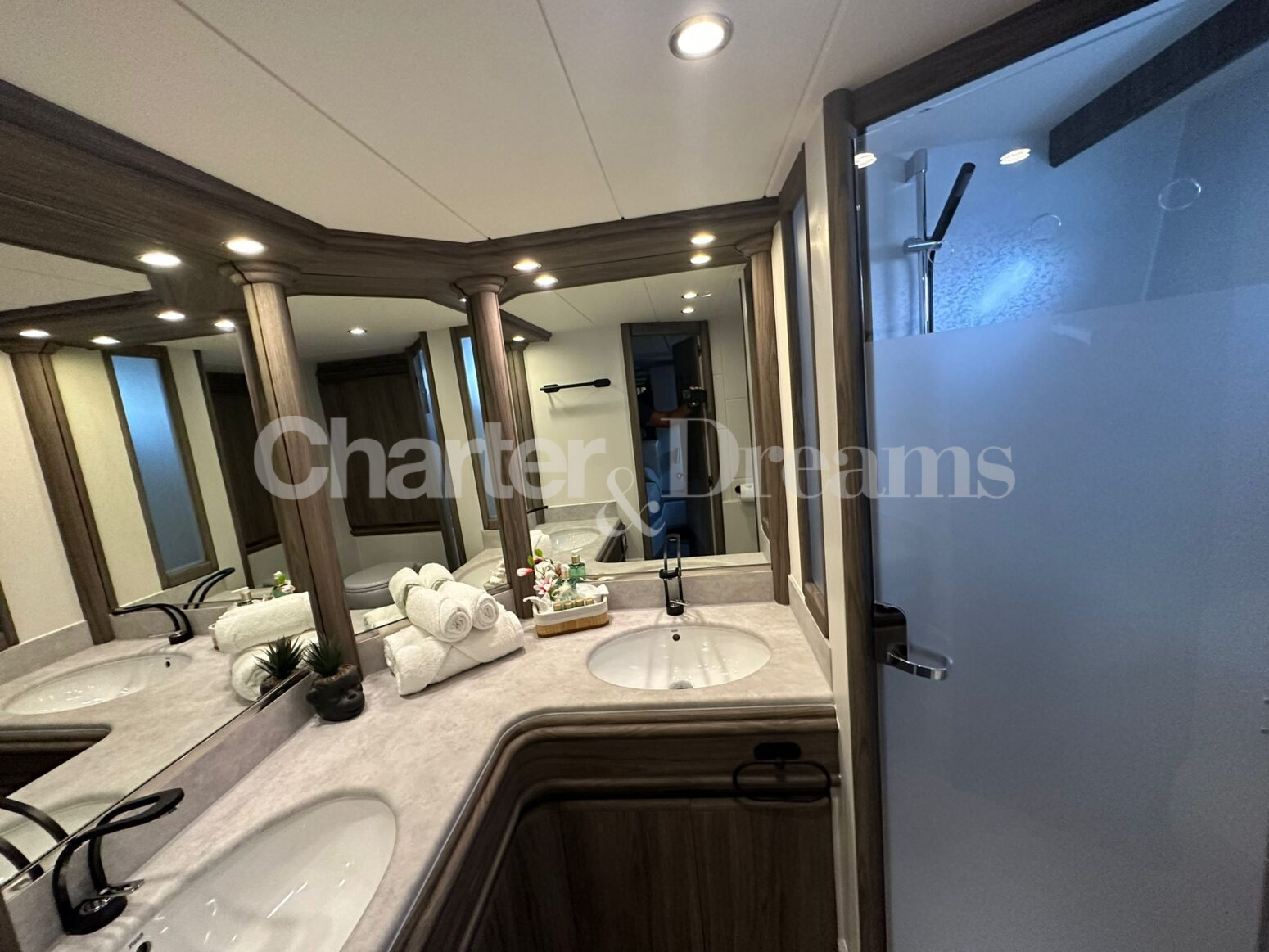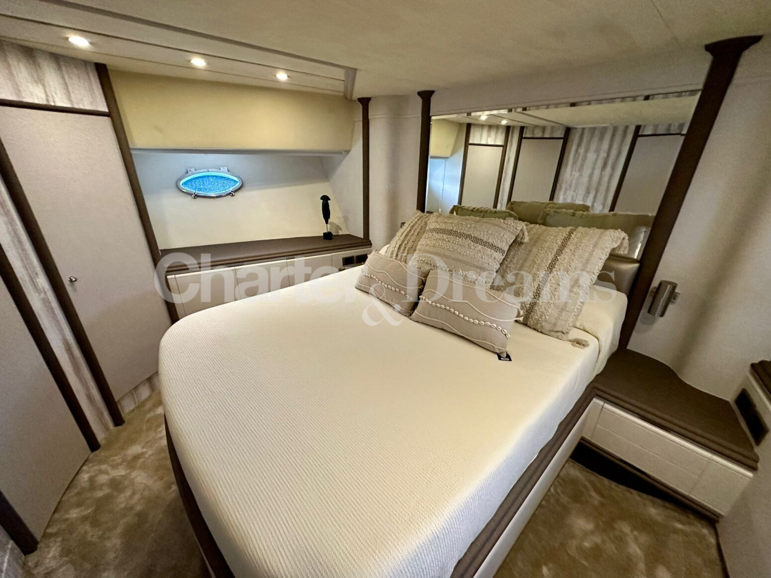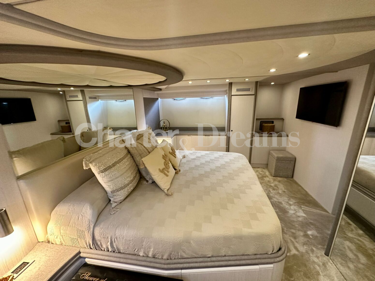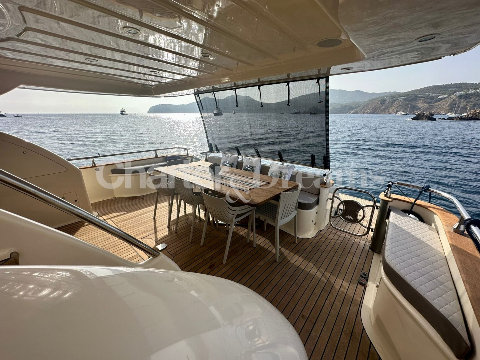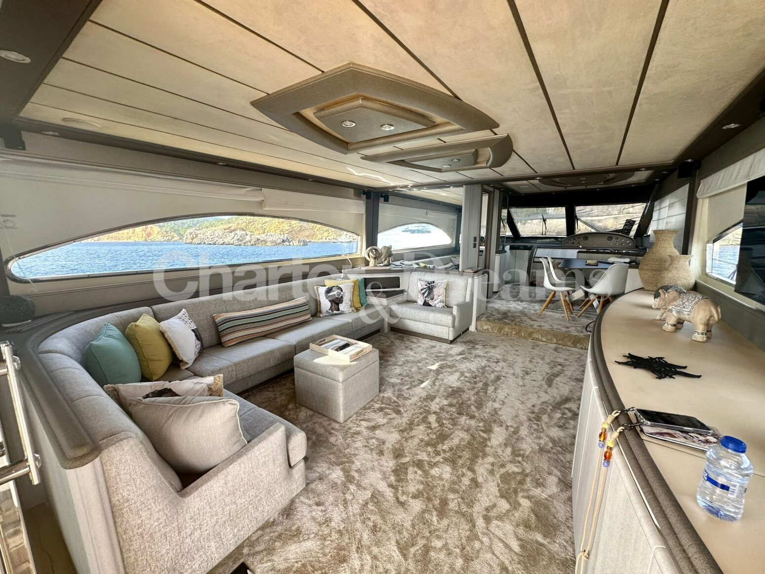 On deck, guests can relax on expansive sunbathing areas, enjoy al fresco dining, or take in the panoramic horizon from the flybridge. Inside, the décor strikes the perfect balance between classic charm and modern sophistication, from the serene lounge to the elegant dining area.