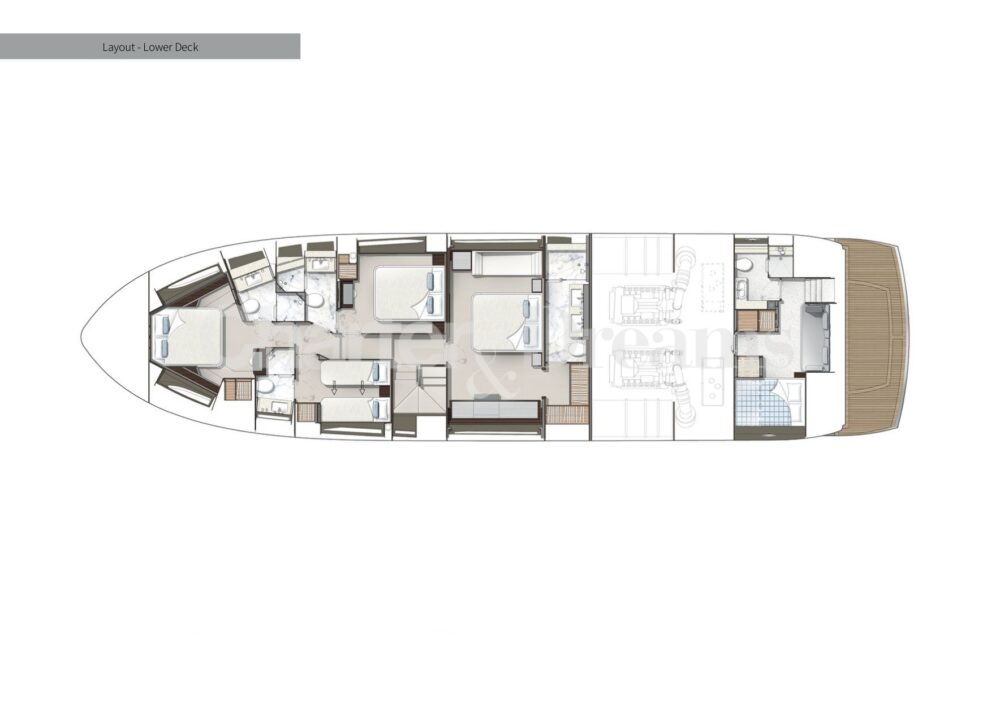 Designed to reflect the fascinating and sophisticated lifestyle of Ibiza, SAAHSA offers exterior areas perfect for sunbathing in front of exclusive beach clubs or enjoying sunset dinners with views of Es Vedrà. The spacious and well-equipped flybridge becomes the social heart of the yacht, while the interior showcases a warm, contemporary aesthetic.
