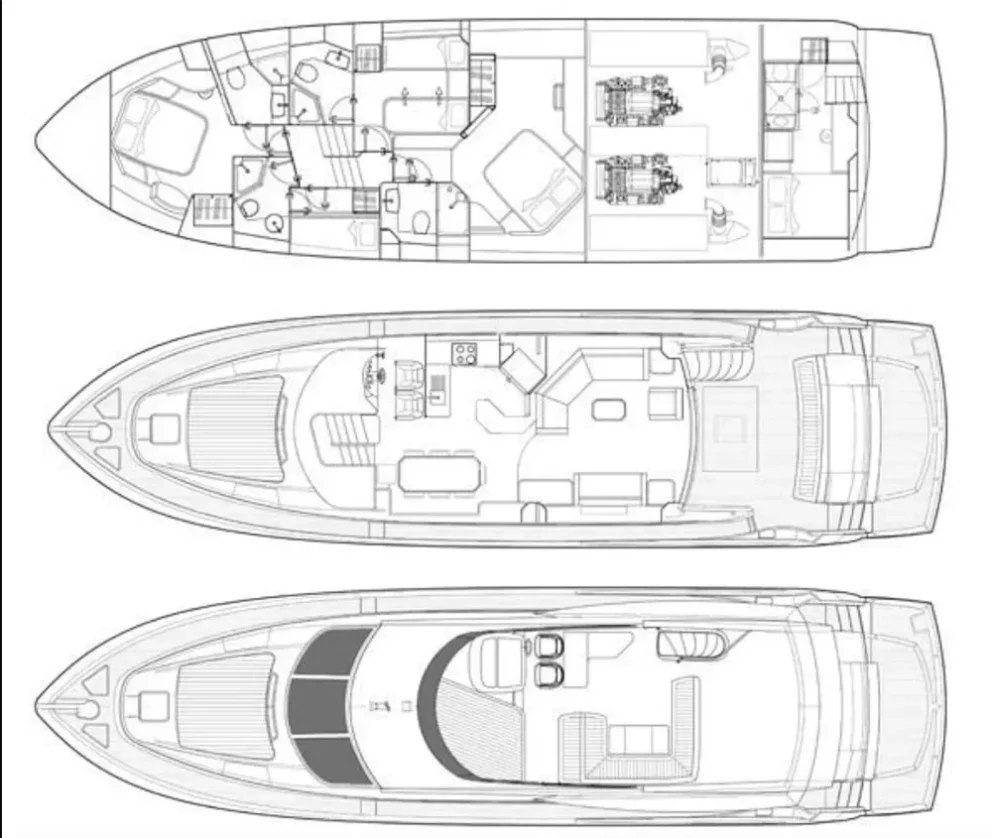 La Sunseeker Manhattan 70 CALA DI LUNA ofrece una excelente navegación gracias al diseño del casco con poco calado y una velocidad de crucero de 16 nudos y una máxima de 34. Los estabilizadores de aleta de última generación se encargan tanto de proporcionar una navegación agradable como disfrutar del fondeo sin apenas movimientos.