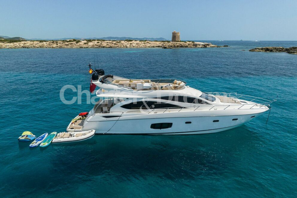 El superyate CALA DI LUNA tiene su base en Ibiza durante todo el año. También esta disponible para alquiler en cualquiera de las Islas baleares; Mallorca y Menorca, destinos que se alcanzan con suma facilidad en espacios cortos de tiempo gracias a la velocidad de este yate, La Sunseeker Manhattan 70 CALA DI LUNA incluye el amarre en el precio, en el exclusivo puerto de Marina Ibiza donde esta el famoso restaurante Lio y varias tiendas de lujo. Ibiza es un destino atractivo tanto por su belleza y magia como por la proximidad de disfrutar de las aguas turquesas de Formentera.