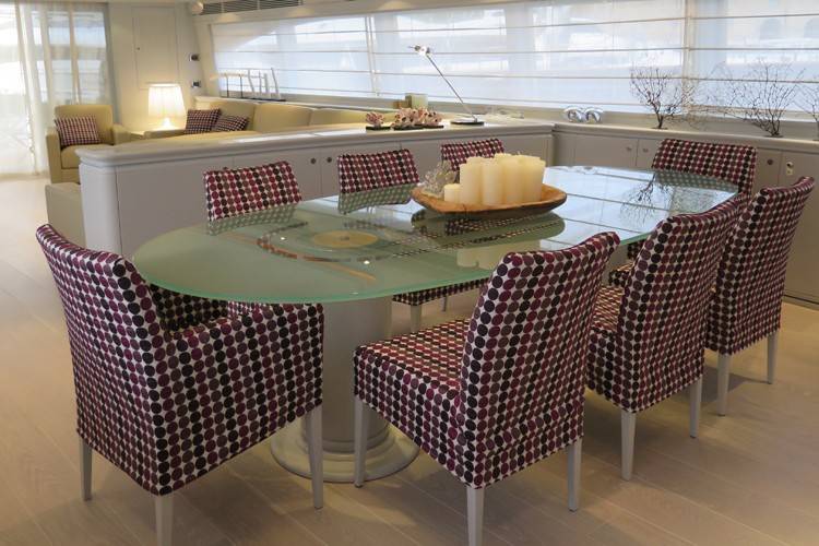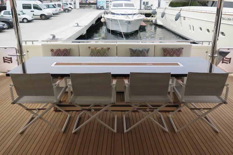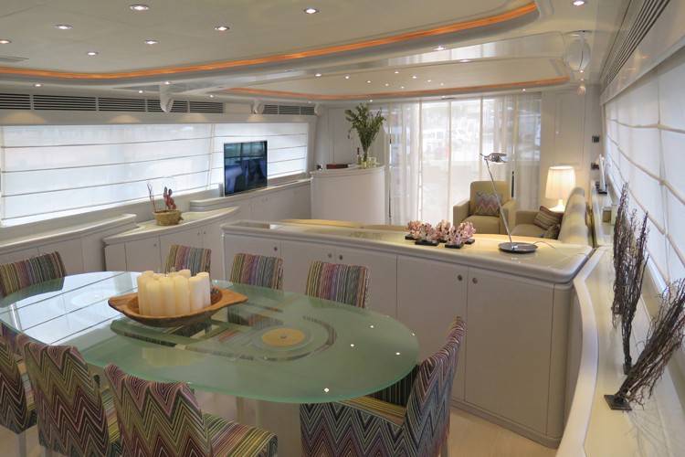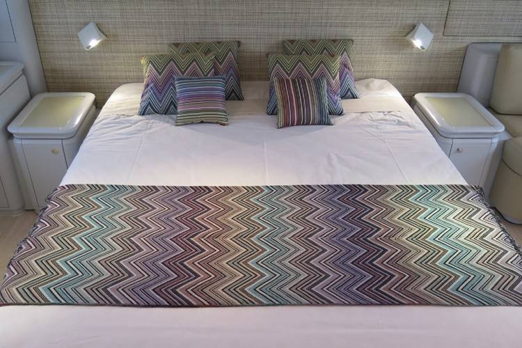 CAMARIK puede alojar cómodamente hasta 11 huéspedes en 5 camarotes bien equipados, que incluyen una suite principal, tres camarotes dobles y un camarote Twin con cama Pullman, todos con cuartos de baño ensuite. La master suite se encuentra en la cubierta principal y esta equipada con cama tamaño king y TV, equipo de música, caja fuerte y armario. A continuación, en la cubierta inferior, encontramos tres camarotes VIP con cama tamaño queen, TV, equipo de música, cuarto de baño ensuite, gabinetes, caja de seguridad y un camarote twin con TV y equipo de alta definicion. Su amplio salón y sala de estar con comedor, lounge con bar, televisión y equipo de música lo convierten en el yate perfecto para entretenerse y relajarse. Los tonos cálidos y el mobiliario suntuoso se encuentran en todo el yate, creando un ambiente relajante y acogedor. En cuanto a las áreas exteriores, CAMARIK ofrece un generoso flybridge con solárium, comedor y bar, lo convierte en el yate perfecto para reuniones, celebraciones o simplemente para relajarse bajo el sol. También es capaz de llevar hasta 6 tripulantes a bordo para garantizar una experiencia charter relajada.