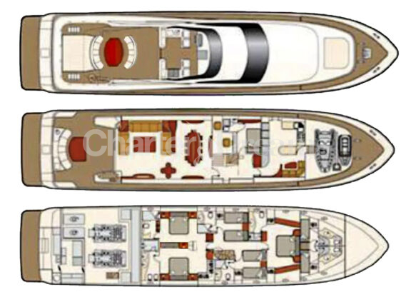 Este excepcional yate puede acoger hasta 12 invitados en sus 5 camarotes, todos ellos en condiciones inmejorables y con baño privado, incluyendo una espaciosa suite principal, dos camarotes VIP y dos camarotes twins que pueden convertirse en dobles, ideales para familias o grupos de amigos. Todos los camarotes cuentan con cuarto de baño privado, lo que garantiza total privacidad y comodidad.