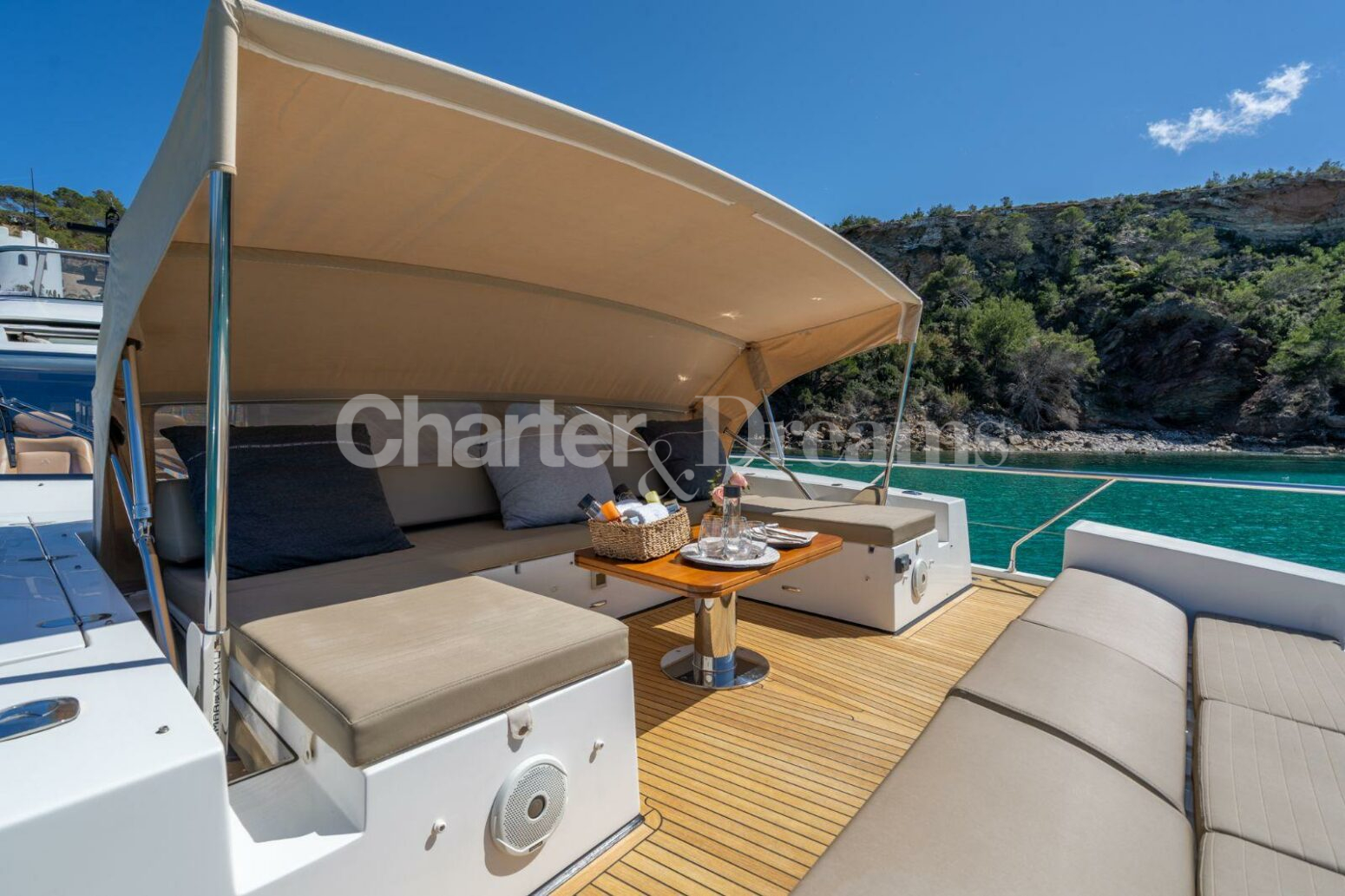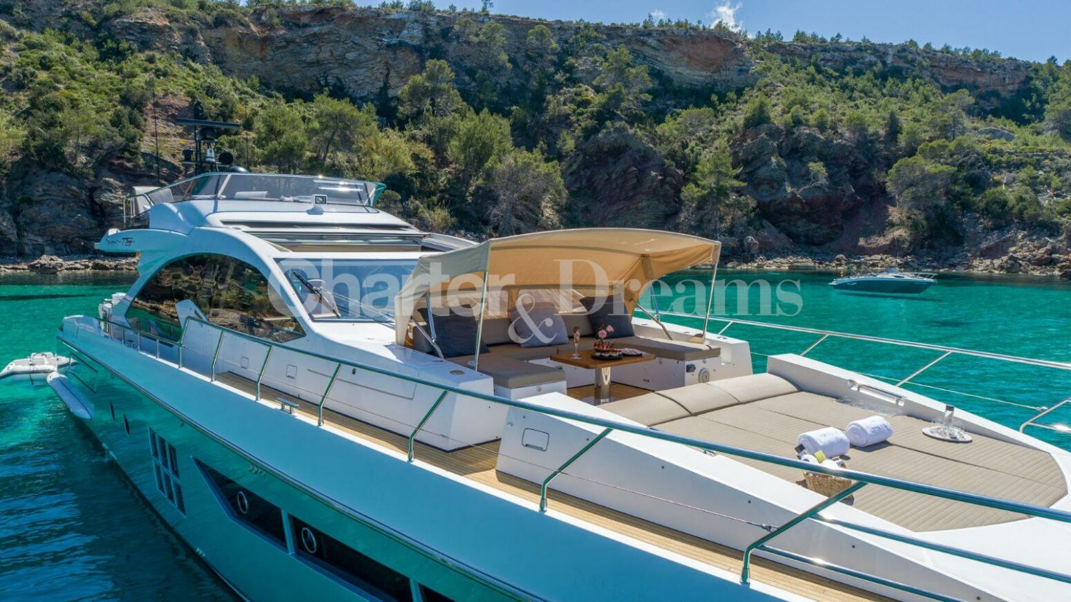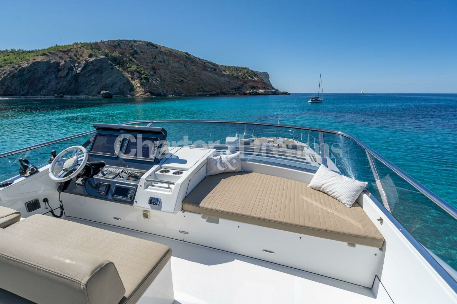 DESTINOS GRAN ABE II tiene su puerto base en Marina Ibiza y está disponible para charter todo el verano en las Islas Baleares. Su ubicación en Marina Ibiza es sin duda inmejorable, donde todo el mundo quiere estar, junto a las boutiques de lujo y el famoso restaurante Lio. Marina Ibiza es también el punto de encuentro para aquellos que visitan ROTO, uno de los restaurante&club más fashion de la isla.