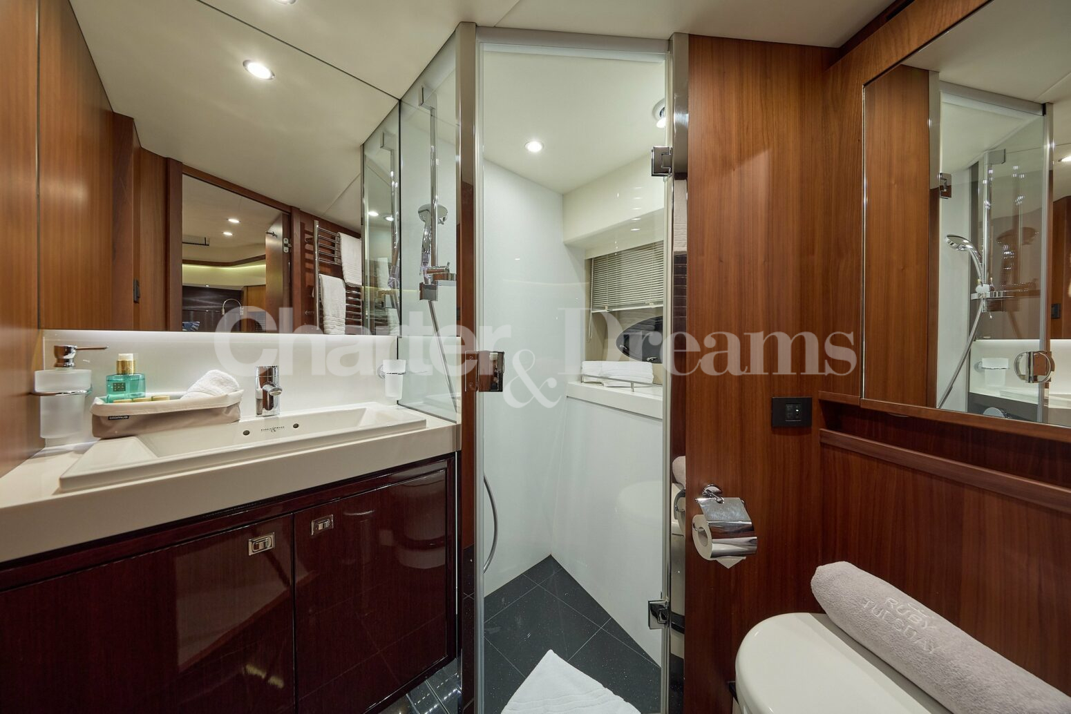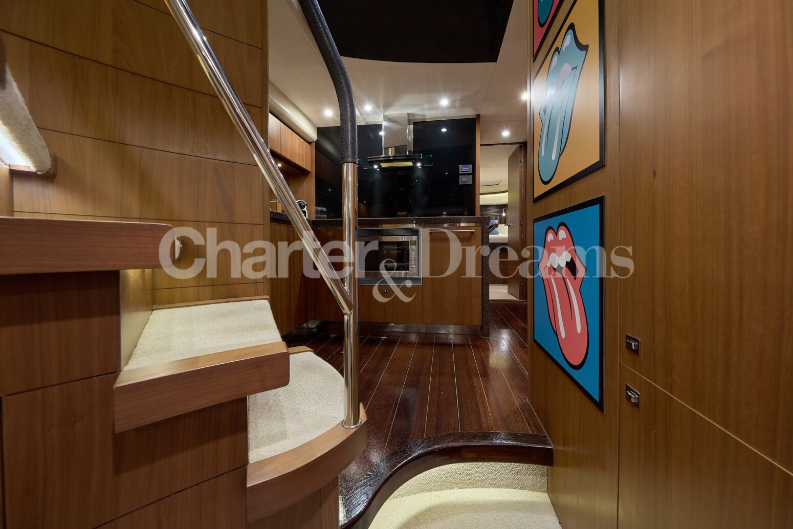 Gracias a su casco ligero, RUBY TUESDAY es un yate ágil que le permite alcanzar velocidades de hasta 39 nudos y mantener un consumo reducido, en comparación con otras embarcaciones de características similares.