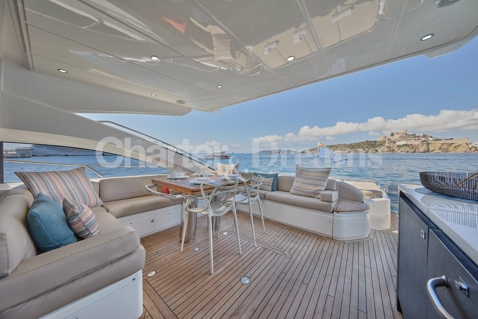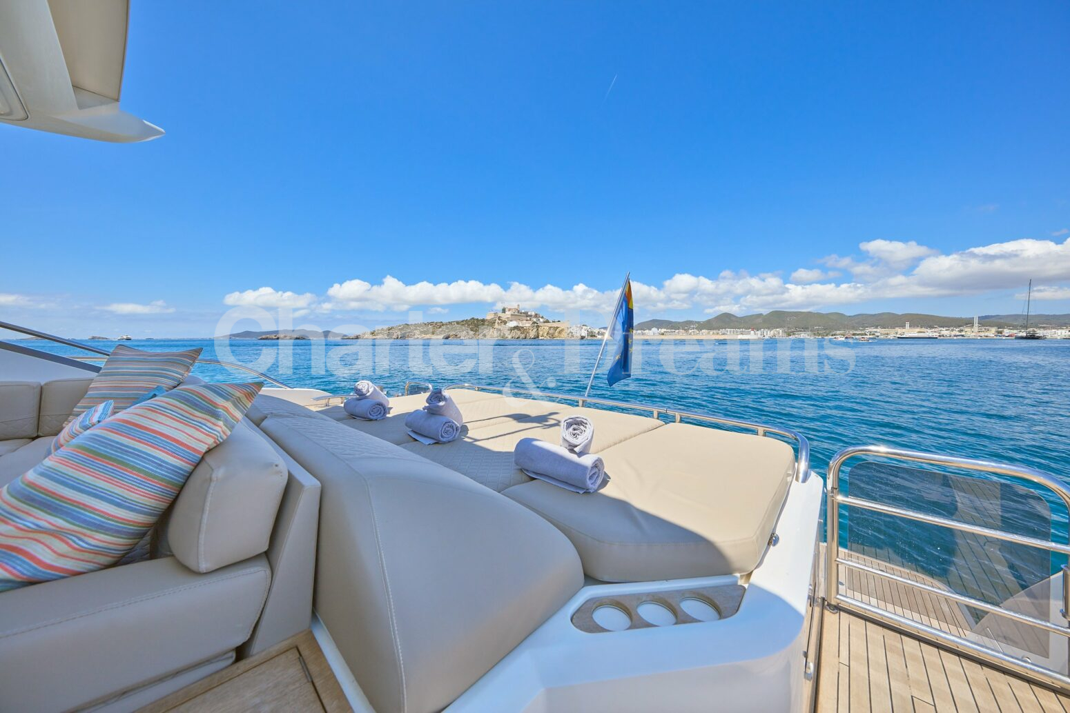 El yate RUBY TUESDAY esta disponible para charter en Ibiza, Islas Baleares todo el año amarrado en el conocido puerto de Marina Botafoch, desde donde podrán ir hasta la isla de Formentera para fondear y darse un baño en una de sus fantásticas calas o si lo desean bajar a tierra para comer en uno de sus renombrados restaurantes. RUBY TUESDAY también está disponible para charter en Mallorca y Menorca.