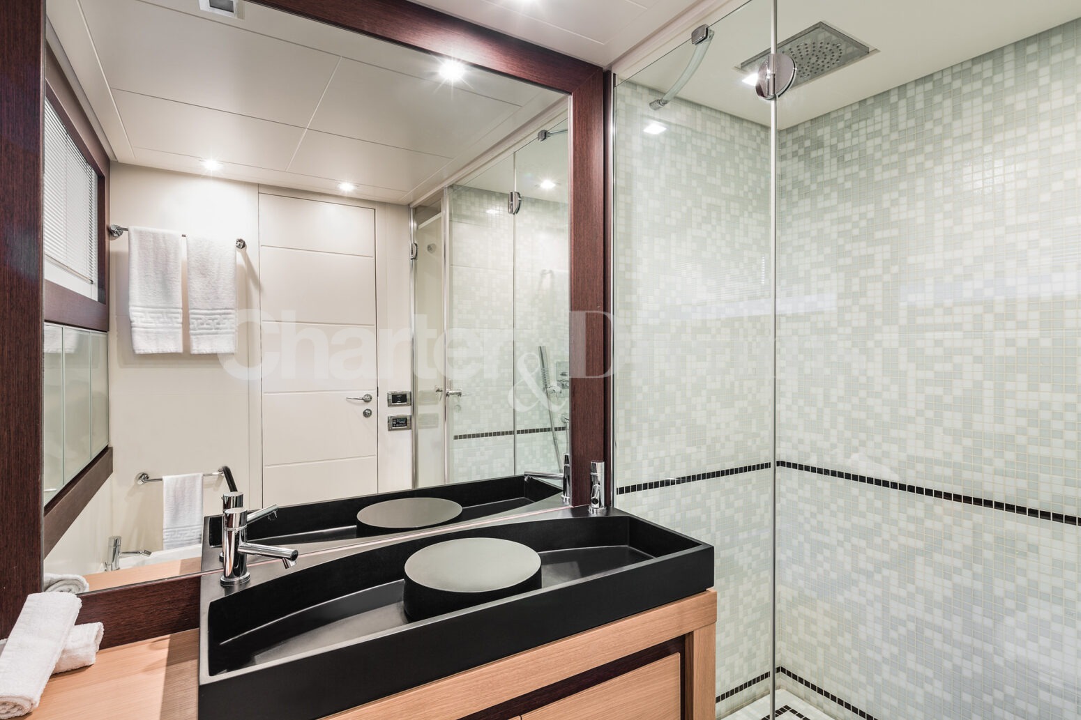 El diseño interior de SENSATION puede acomodar cómodamente hasta 6 huéspedes durante la noche en 3 lujosas cabinas, que incluyen una Suite Principal, una cabina doble y una cabina gemela. El interior del yate presenta paneles de madera clara y tonos neutros que crean un ambiente cálido y relajado. Su brillante salón y espaciosa área de estar se abren hacia la cubierta de popa, equipada con un comedor al aire libre y una generosa zona de solárium. En la proa, los huéspedes pueden disfrutar de una amplia zona de solárium. Desde la plataforma de popa, unas escaleras bajan a la plataforma marina, que permite un fácil acceso al agua, donde los huéspedes de SENSATION pueden disfrutar de sus actividades acuáticas favoritas.