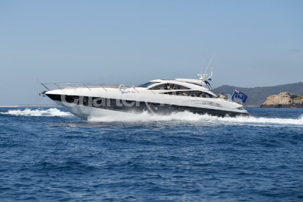 La distribucion interior de TRANQUILITY puede alojar cómodamente hasta 4 huéspedes durante la noche en 2 lujosos camarotes. Su interior ha sido modificado para crear una ambiente relajante. Con un diseño contemporáneo y deportividad, TRANQUILITY se distingue fácilmente entre otros yates. Una vez a bordo, destaca la delicadeza de los materiales utilizados. El exterior diseñado sin barreras ni puertas lo convierten en el lugar perfecto para disfrutar del sol de Ibiza y Formentera. El techo rígido ilumina el interior creando una atmósfera de absoluta libertad. Esto la hace perfecta para un chárter de un día, pero también extremadamente cómoda durante toda una semana.