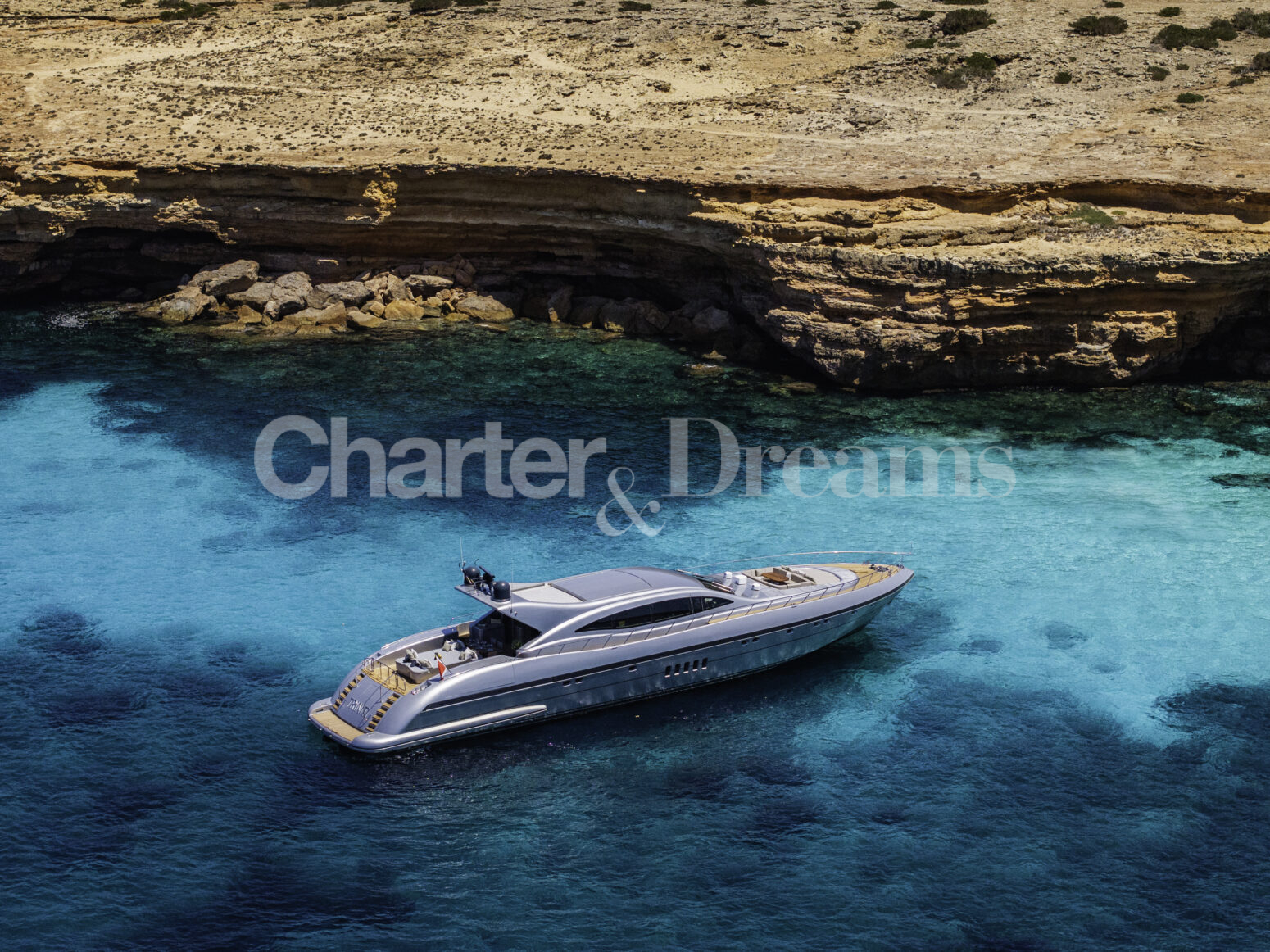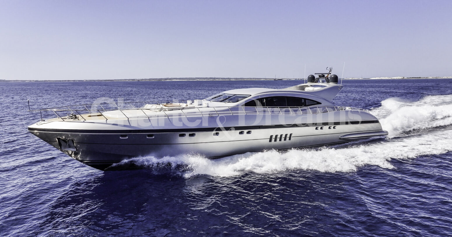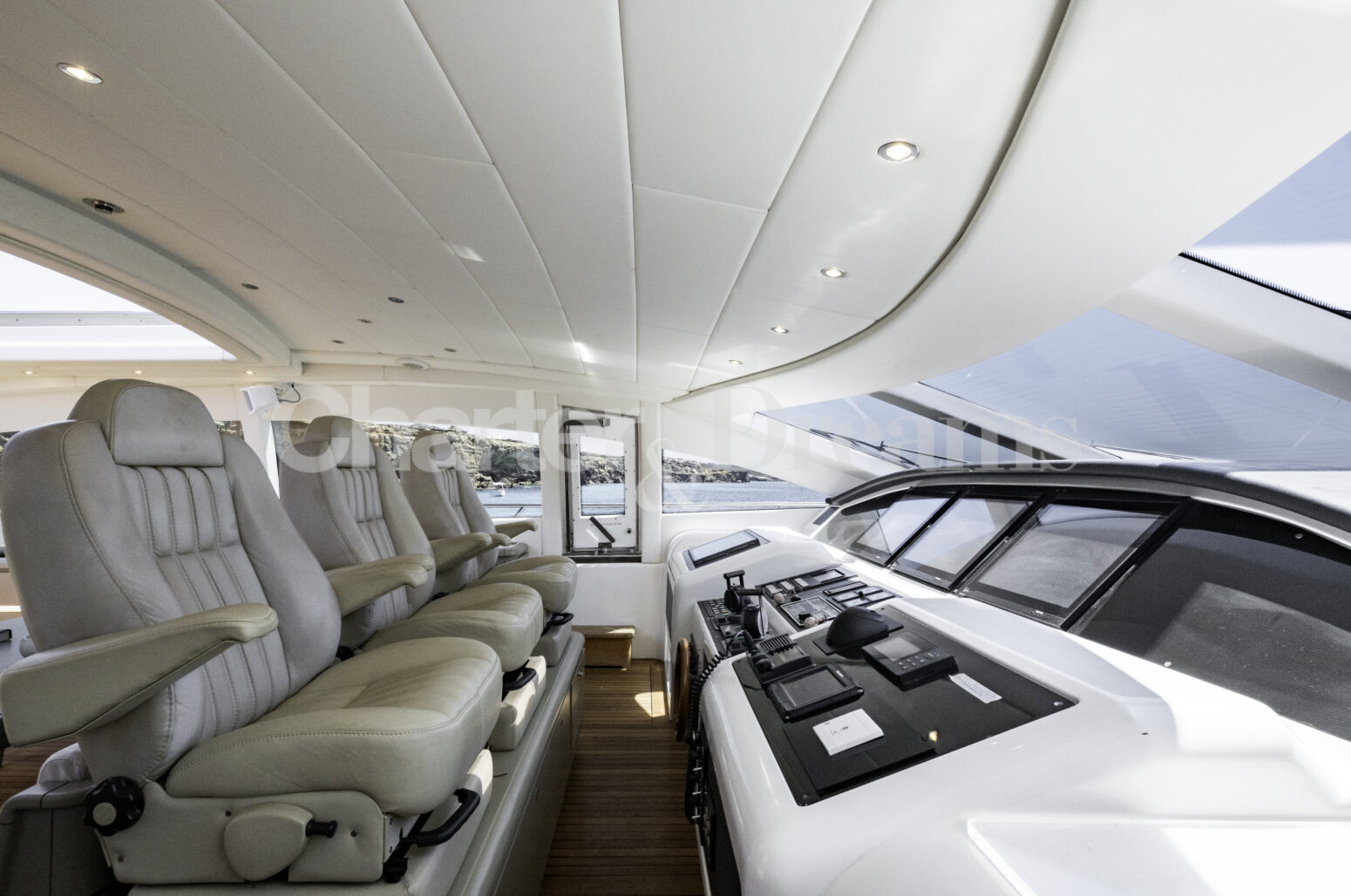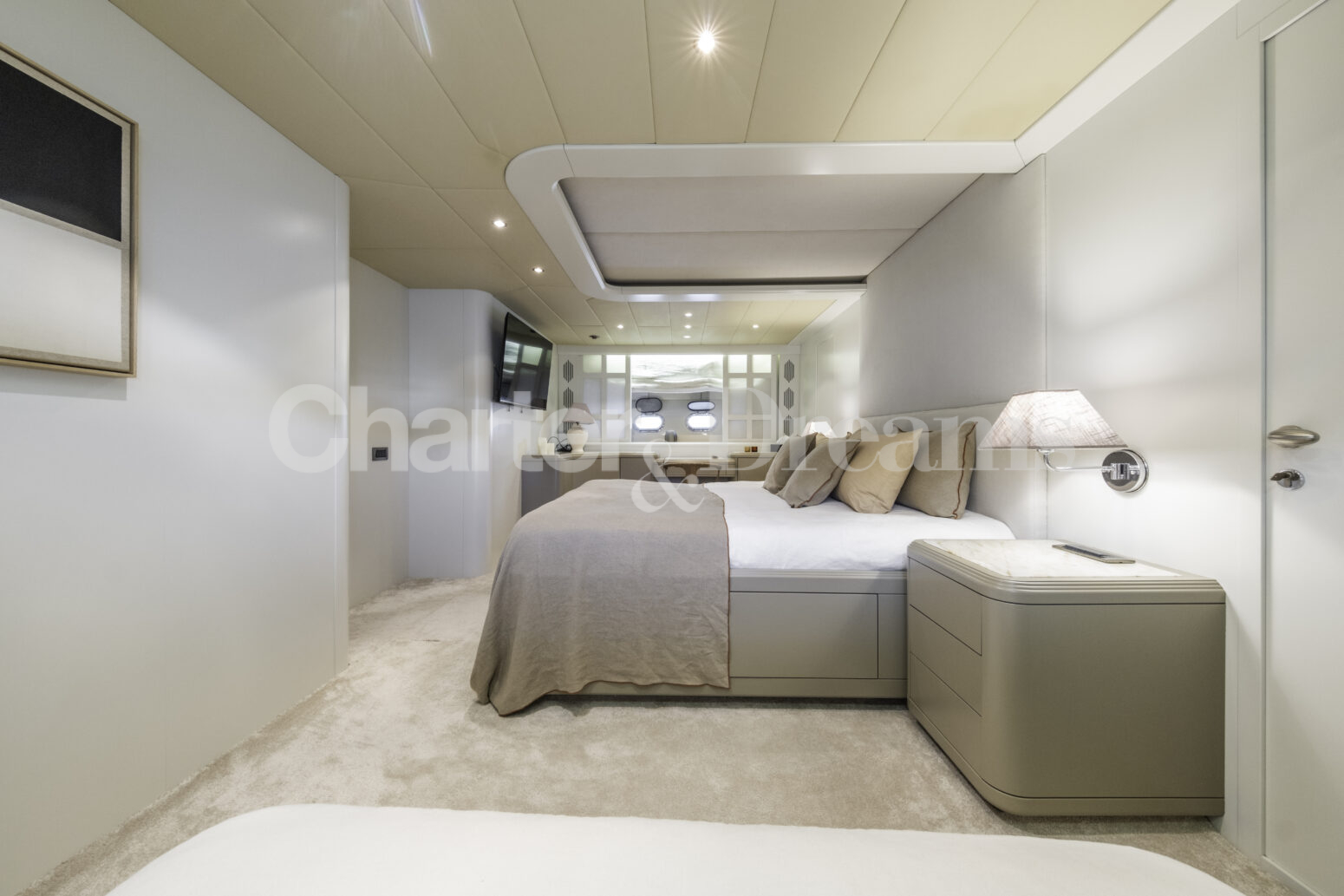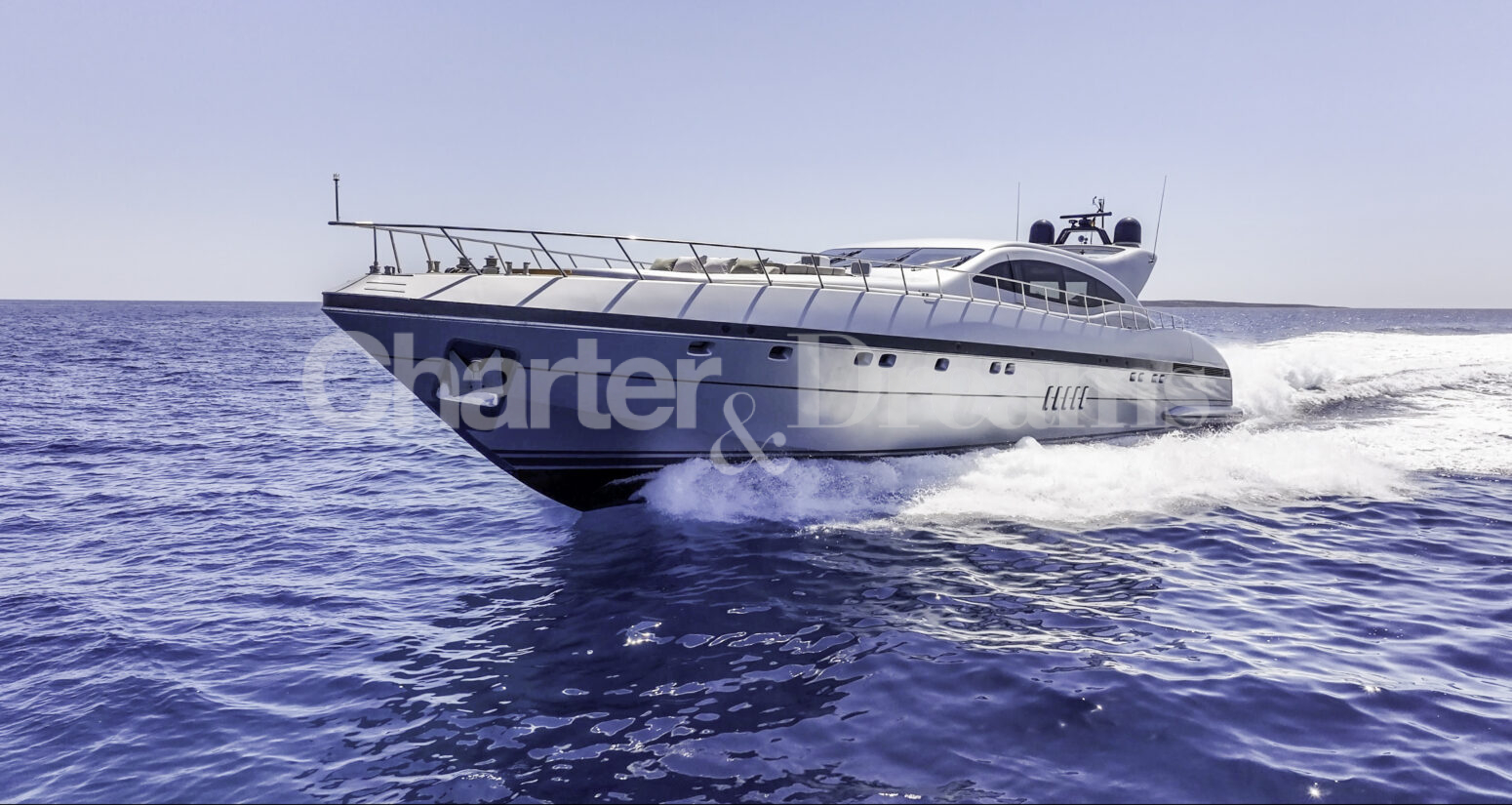 Im Hauptdeck-Salon liegt der Esstisch vorn und die Lounge achtern; zusätzlich steht auf dem Unterdeck ein zweiter, gemütlicher Loungebereich bereit. Draußen bietet das Vorschiff eine große Sonnenliege mit Sitzgruppe und Tisch, achtern wartet ein breites Sunpad für entspannte Stunden. Zur Ausstattung zählen Starlink-Internet, zonenweises Audiosystem, komplette Klimatisierung sowie einziehbare Sonnensegel vorn und hinten. Kapitän, Koch und zwei Crew sorgen ab Marina Ibiza für einen reibungslosen Ablauf.