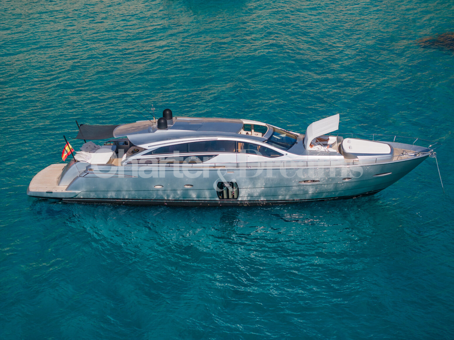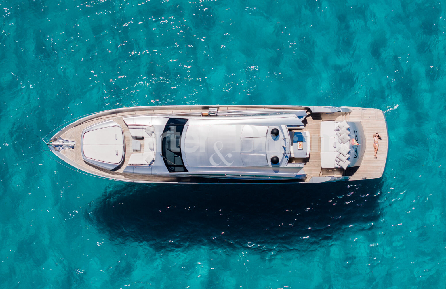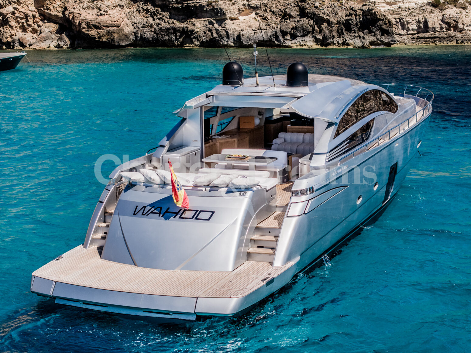 WAHOO es una Pershing 80, yate open italiano de 24,50 m × 5,70 m que combina líneas afiladas y altas prestaciones (28 nudos de crucero, 50 de punta) con dos MTU de 2 × 2.430 CV. Capacidad de día 12 invitados + 3 tripulantes.
